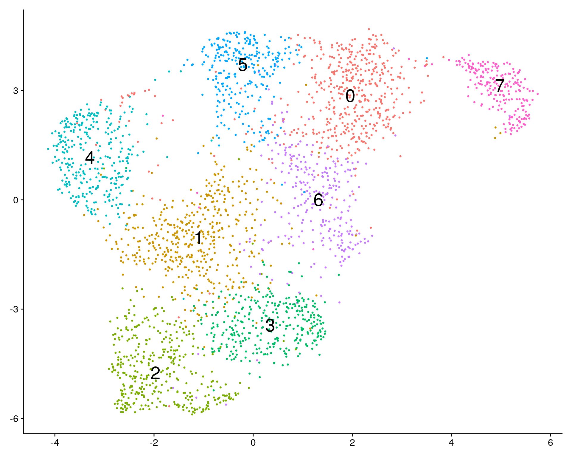 DimPlot( sc_seurat, label=TRUE, label.size = 8) +