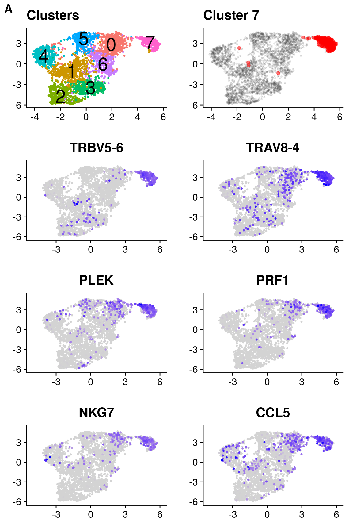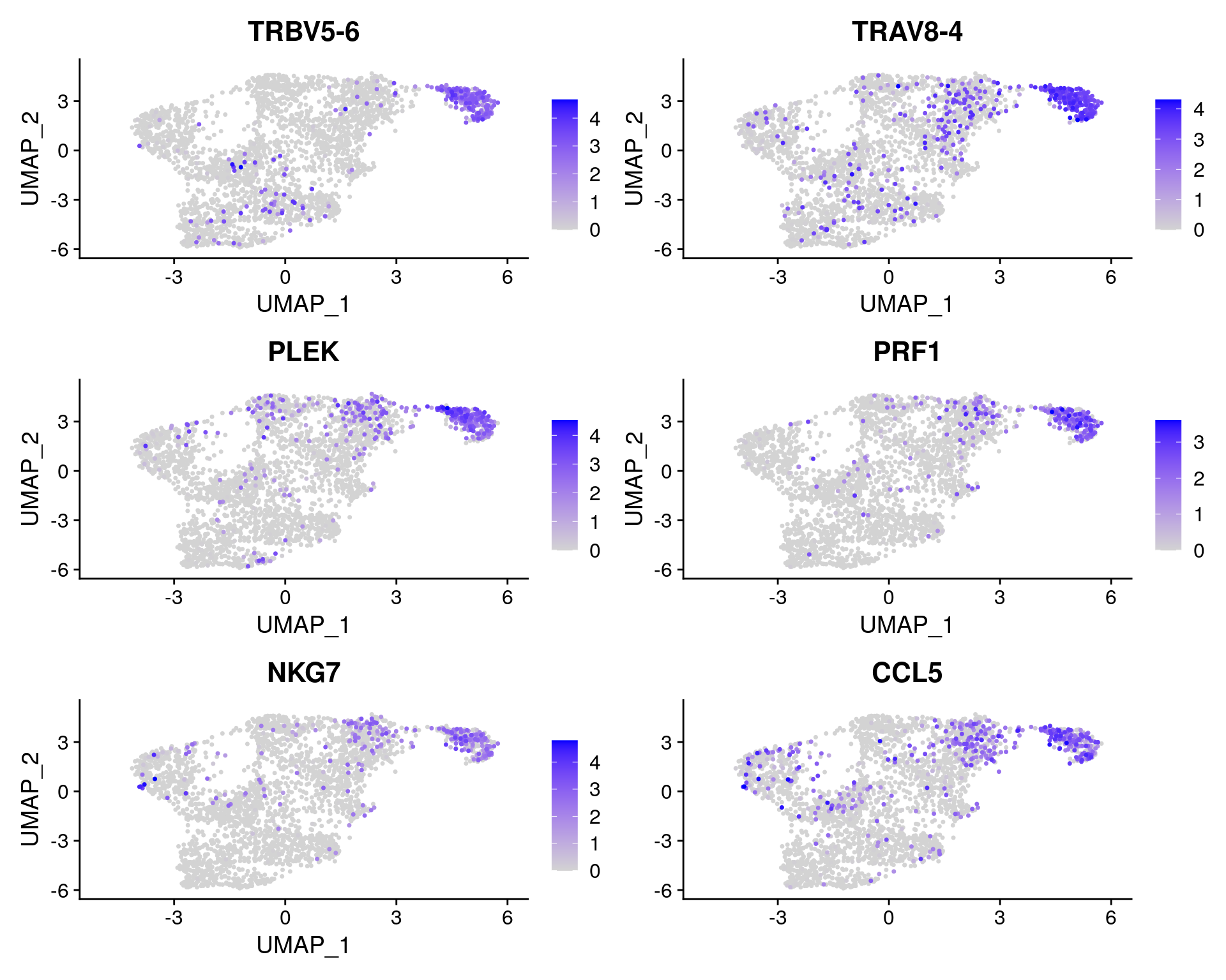 featuresName = c("TRBV5-6", "TRAV8-4", "PLEK", "PRF1", "NKG7", "CCL5")
